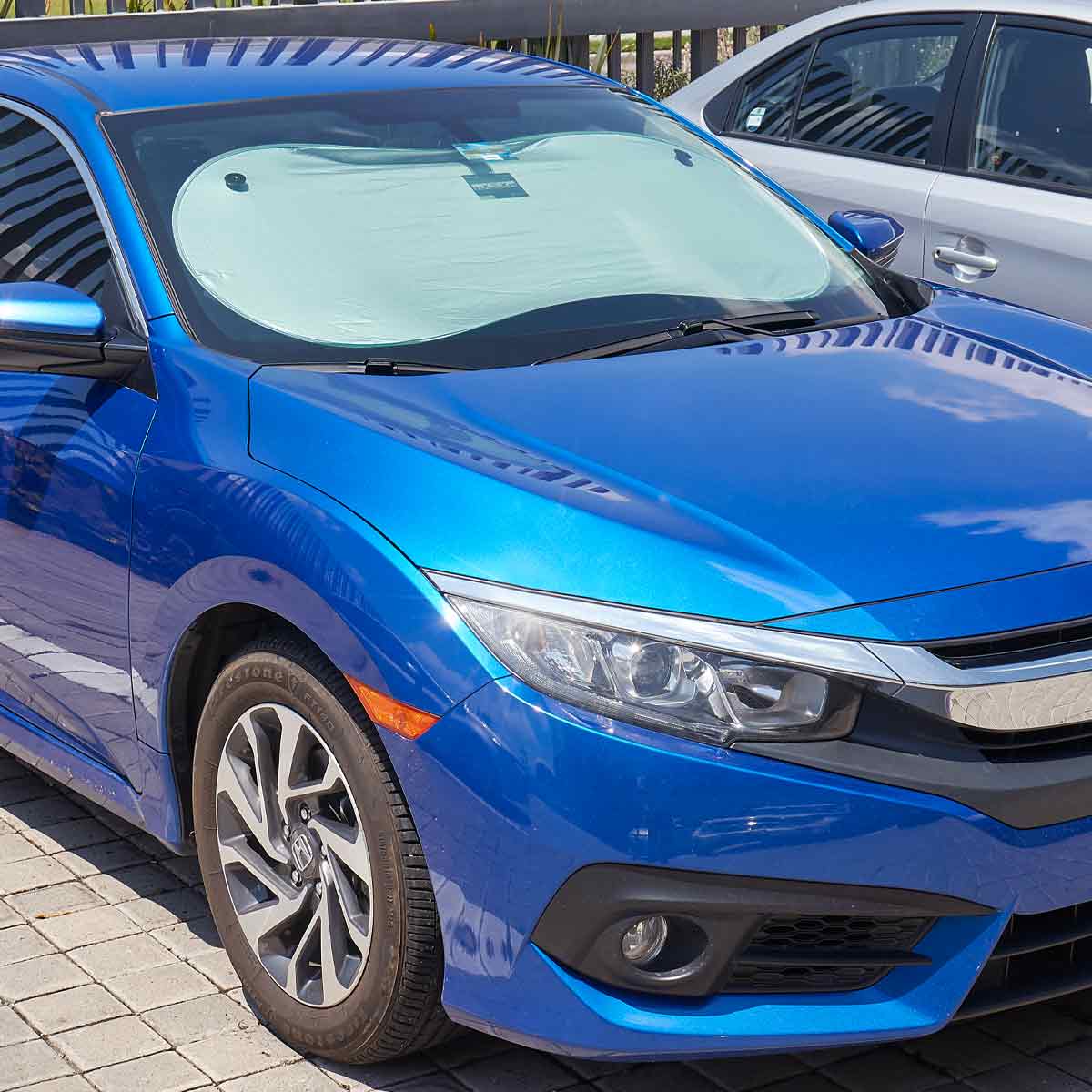 Parasol plegable con 2 ventosas para una instalacion rapida y facil.