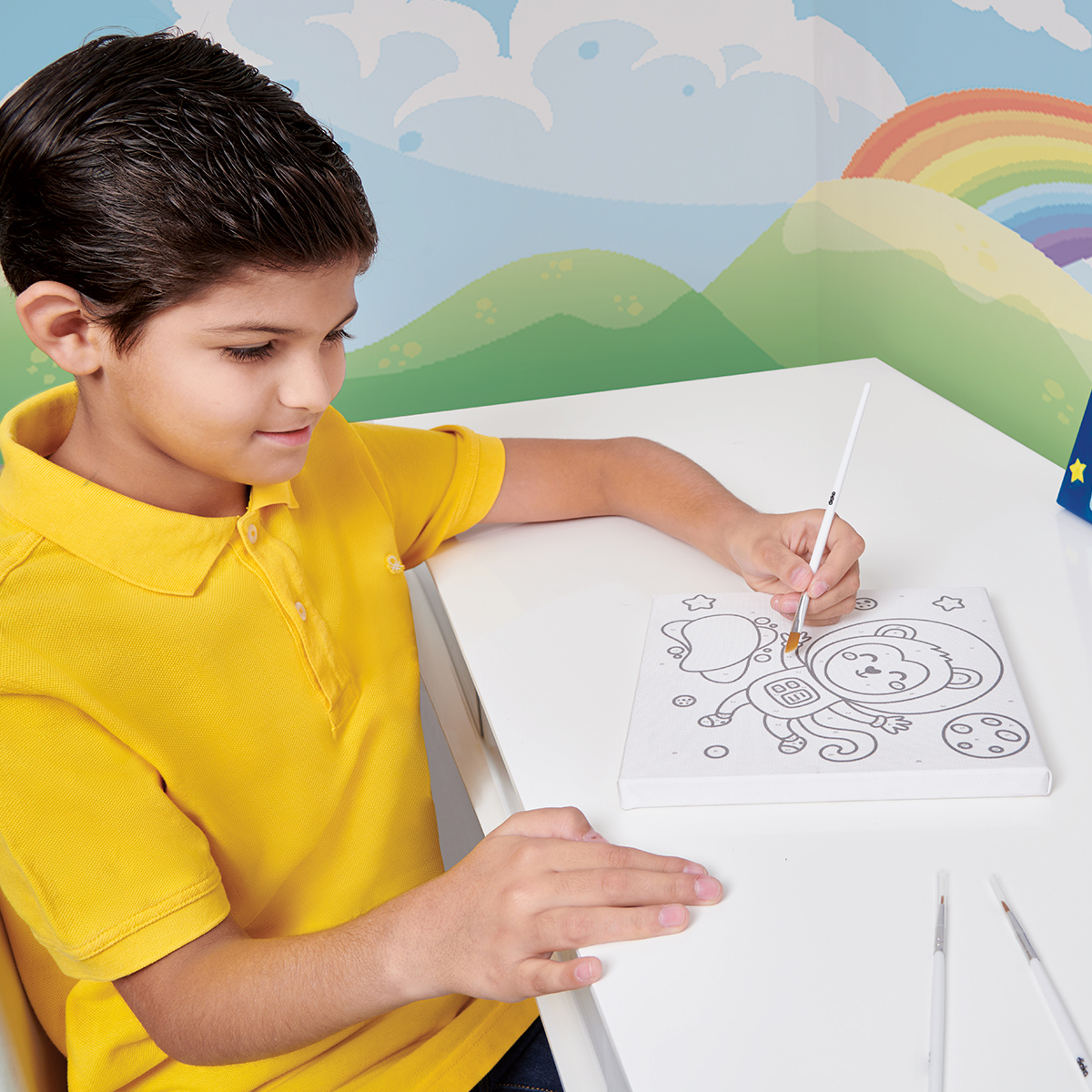 Lienzo para pintar. Cultiva el sentido del arte en los pequenos, les permite pintar facilmente siguiendo los numeros guia para cada color. Incluye lienzo, 6 pinturas de colores y 3 pinceles de diferente grosor.
