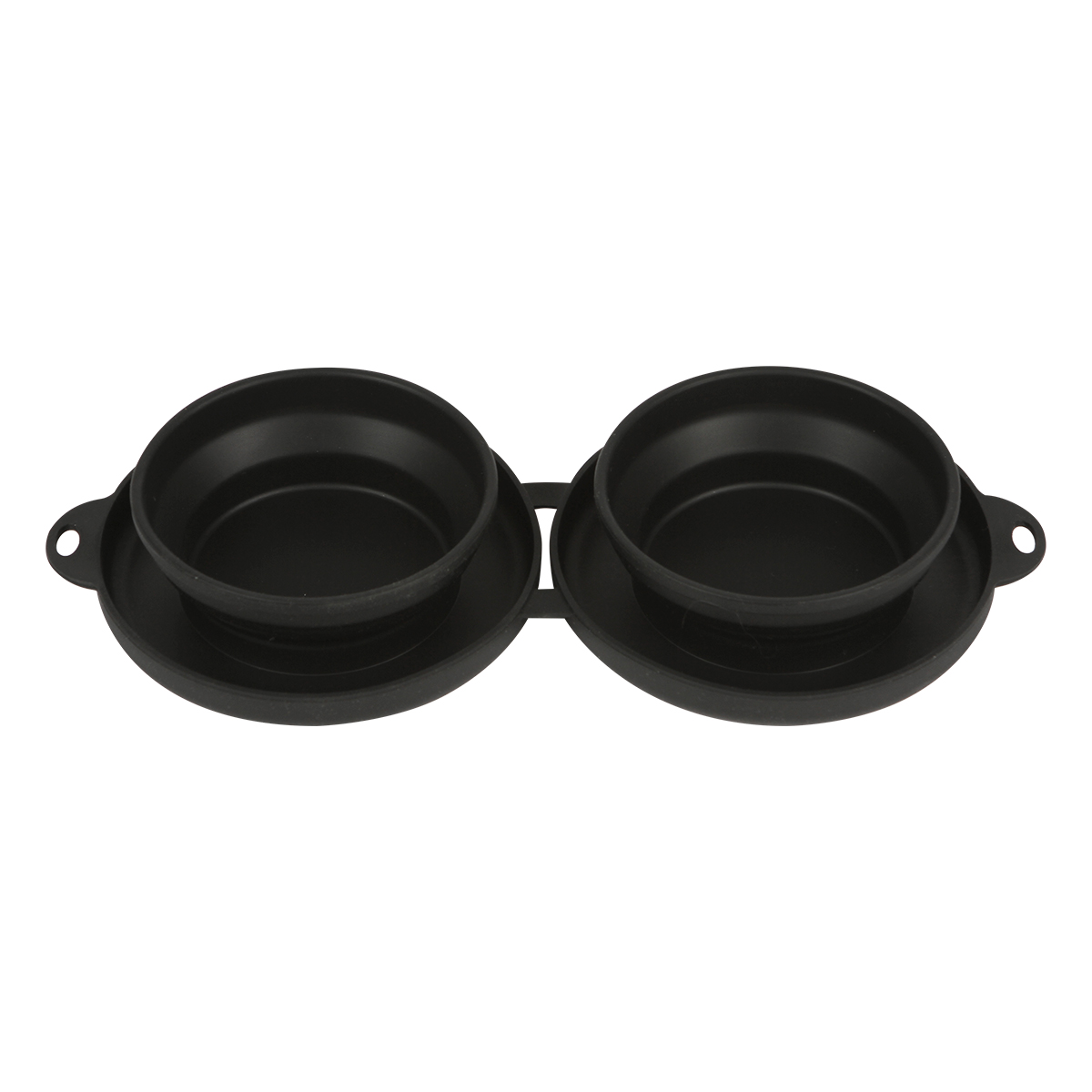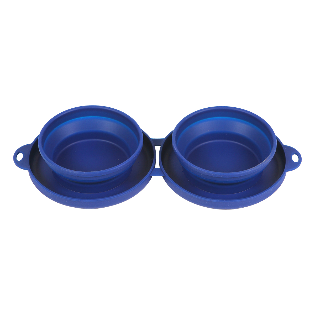 Plato doble compartimento para alimento de mascota fabricado en plástico, con capacidad de 250 ml. Con diseño plegable que facilita su traslado, incluye arnés metálico.