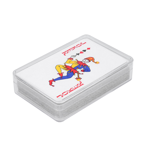 Juego de cartas con estuche de plástico. (52 unidades divididas en cuatro palos y 2 comodines).