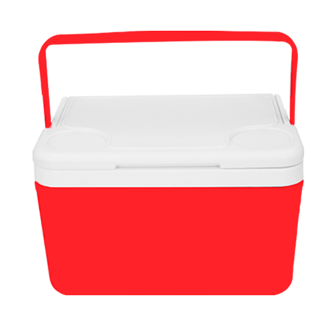 Hielera plástica de doble pared con asa superior y capacidad para 6 latas de 355 ml.