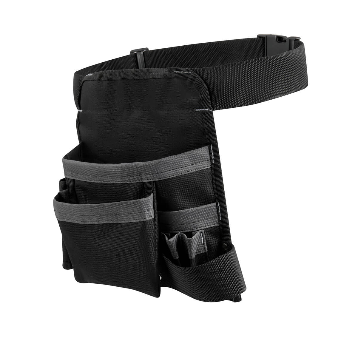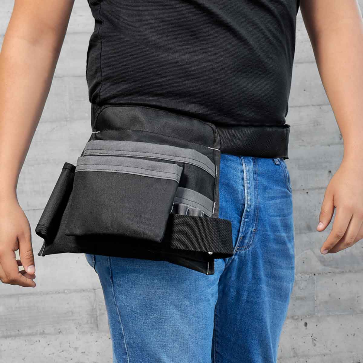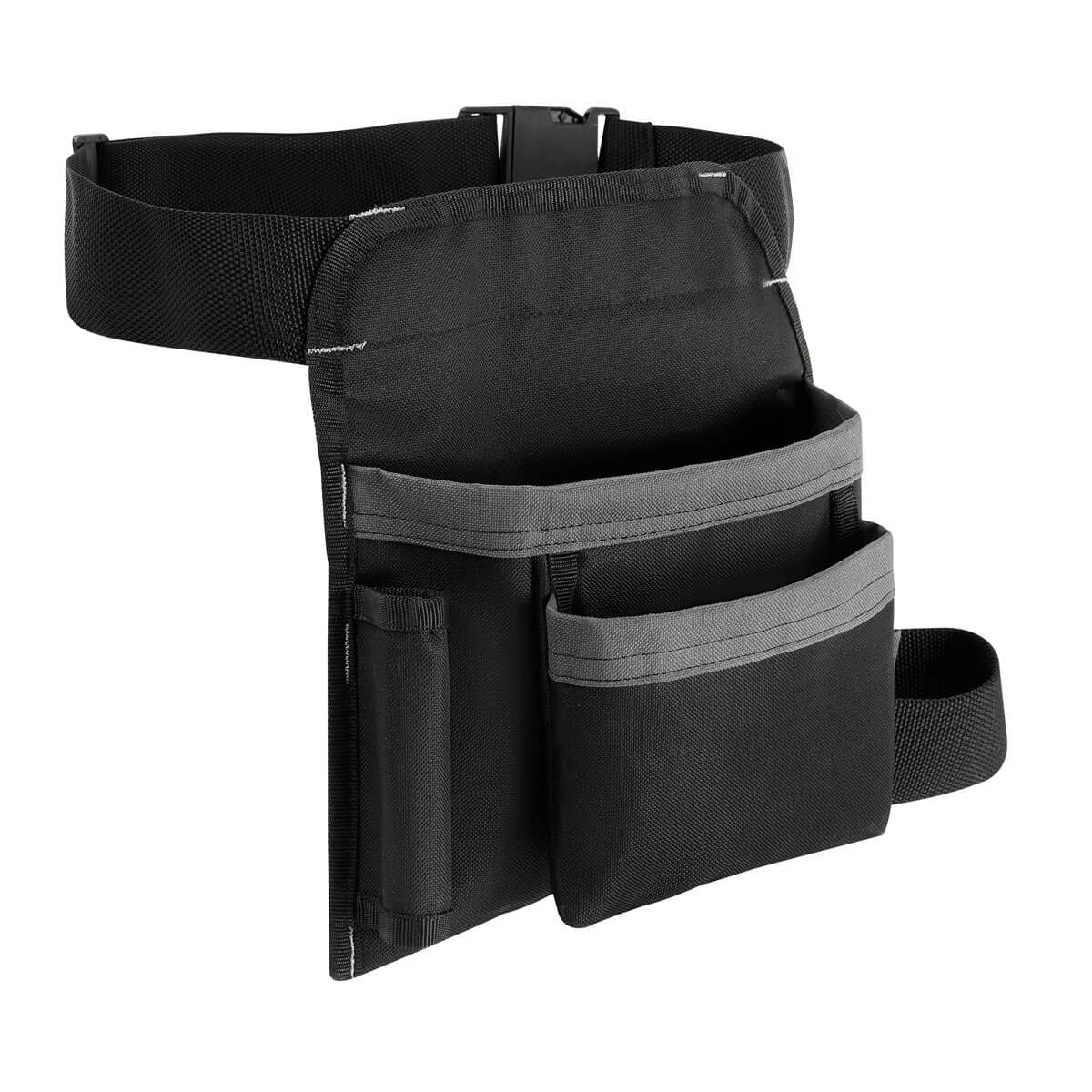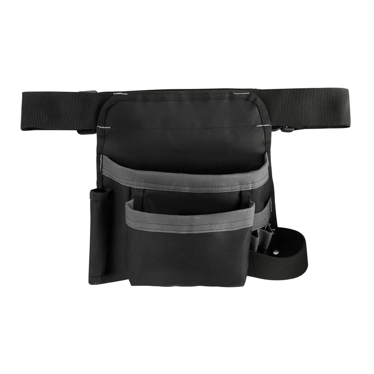 Bolsa para herramientas ideal para sostener y tener acceso rapido a destornilladores, llaves, cintas, martillo, pinzas etc… Incluye 5 compartimientos, 1 porta martillo y cinturon ajustable con broche de plastico.