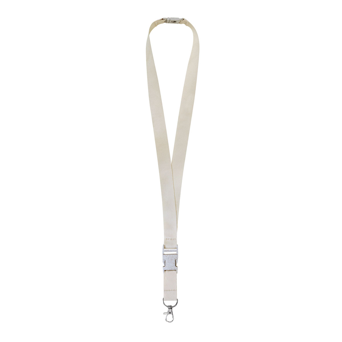 Fabricado con materiales eco amigables. Incluye broche de seguridad, clip desmontable y gancho metalico con giro de 360°.