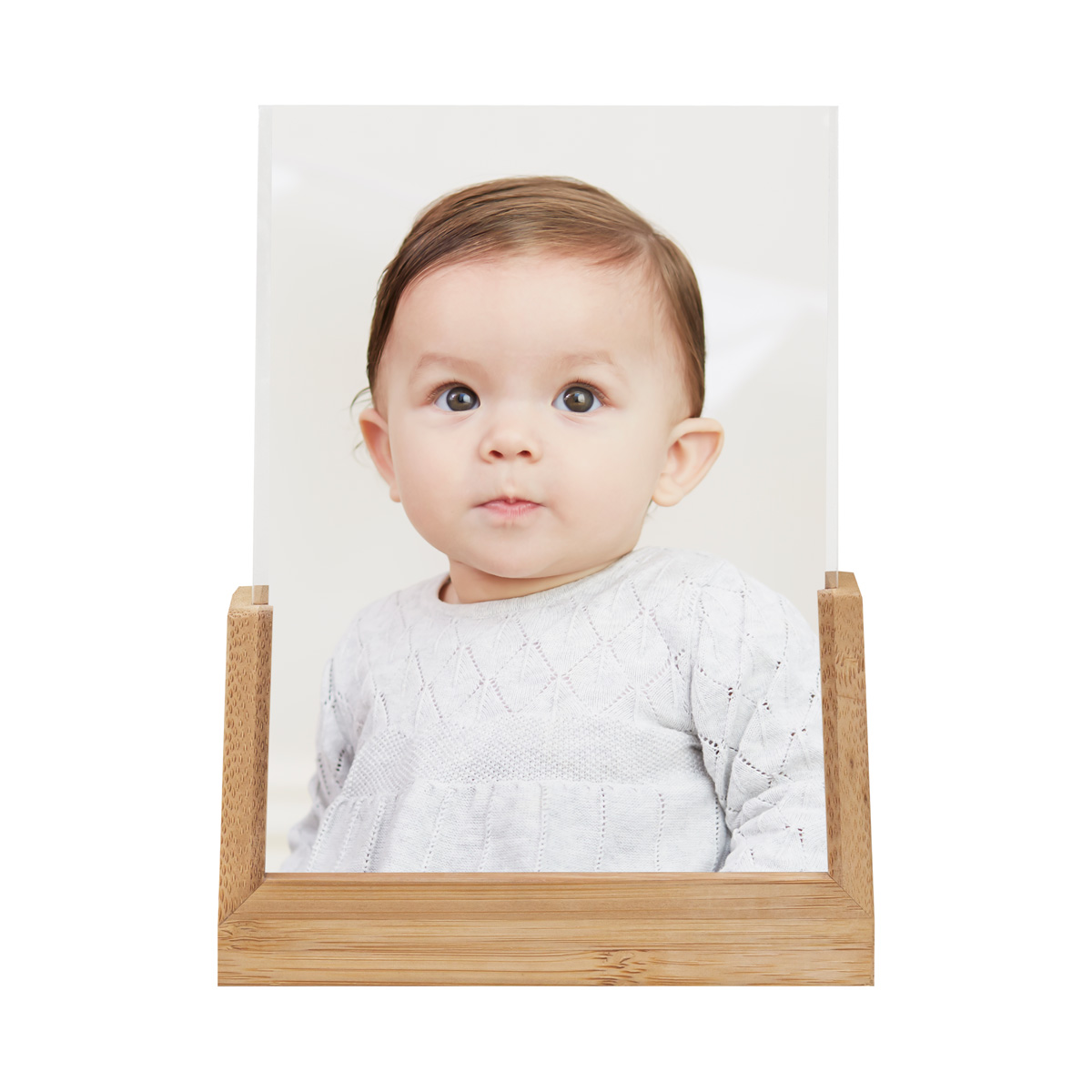 Portarretrato con diseno minimalista, su placa de acrilico permite cambiar facilmente tus fotografias. Apto para foto en formato vertical y tamano de 12 x 15.7 cm.