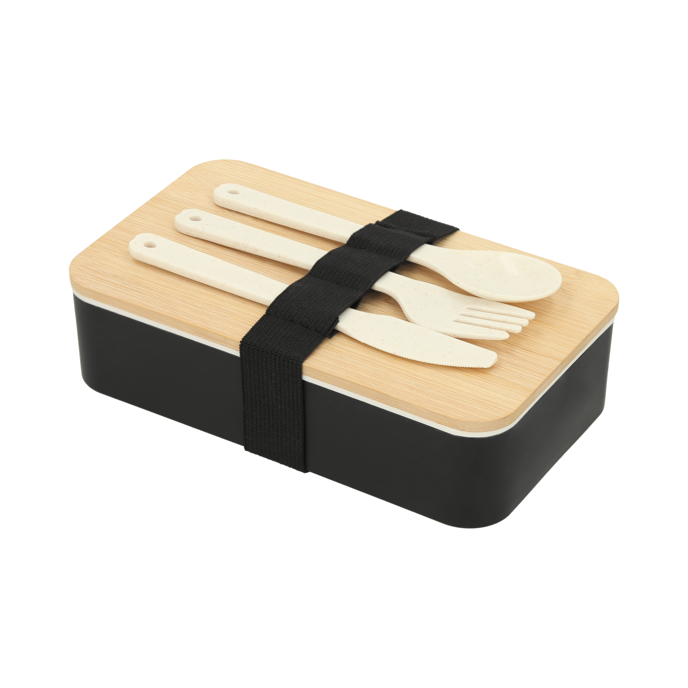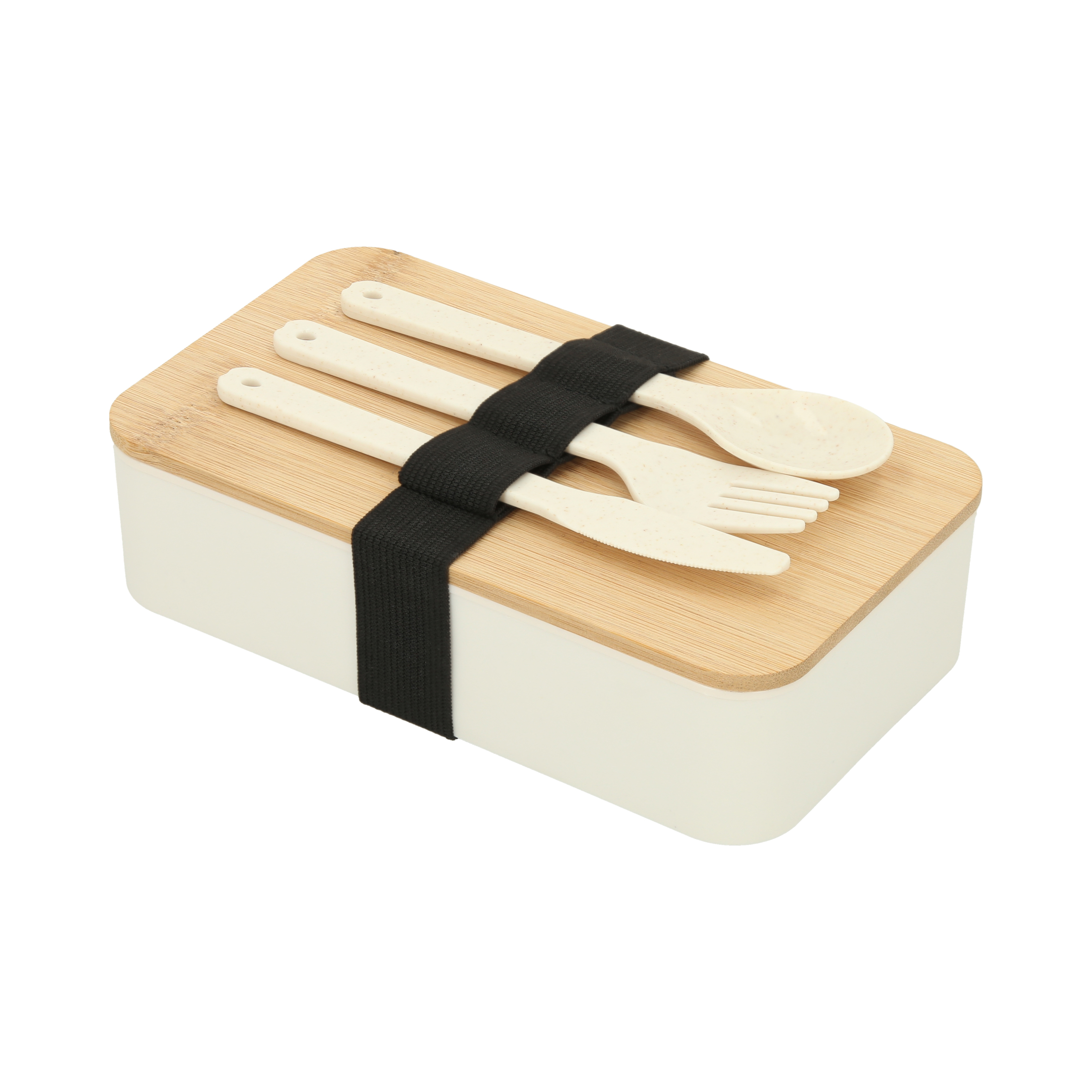 Contenedor de alimentos de poliuretano, tapa de bambú, separador de comida y cubiertos (Cuchara, tenedor y cuchillo).