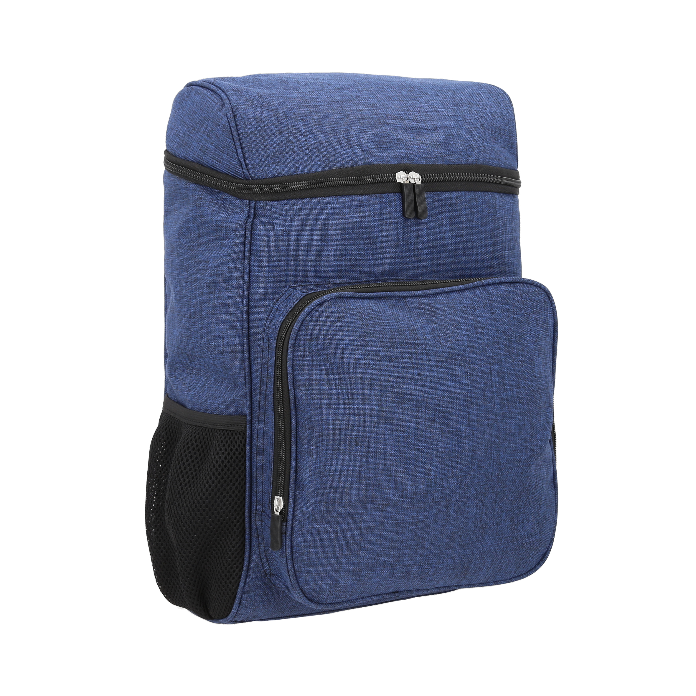 Mochila con porta laptop, doble cierre, una pequeña bolsa frontal y 2 mallas elásticas laterales.