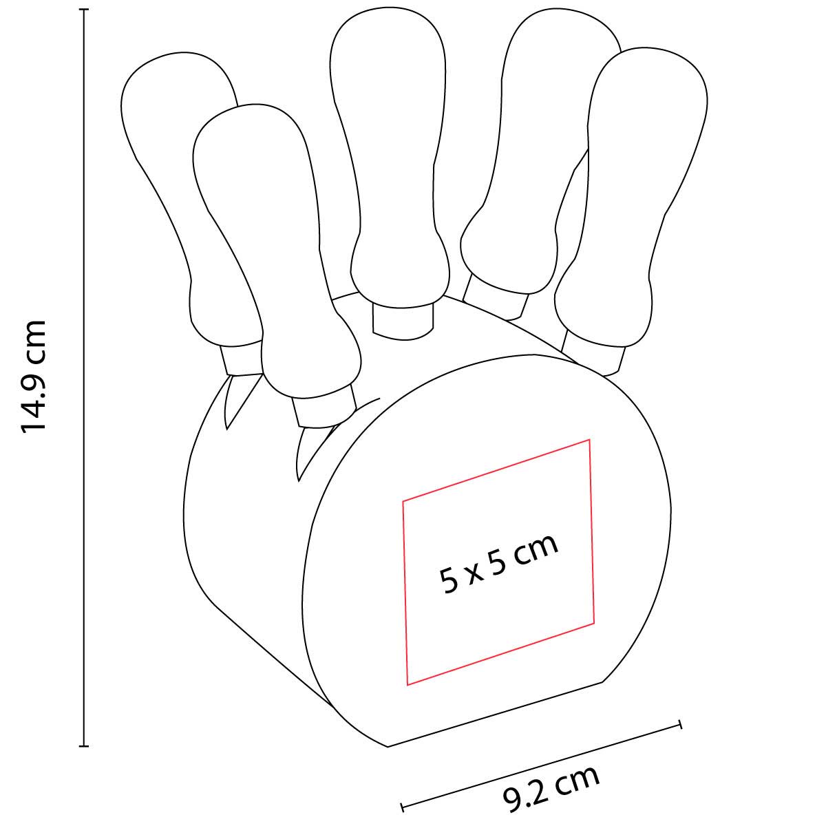 Área de impresión: 5 x 5 cm Base