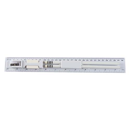 Incluye 2 lapices, 1 borrador, 1 sacapuntas y regla de 30 cm.