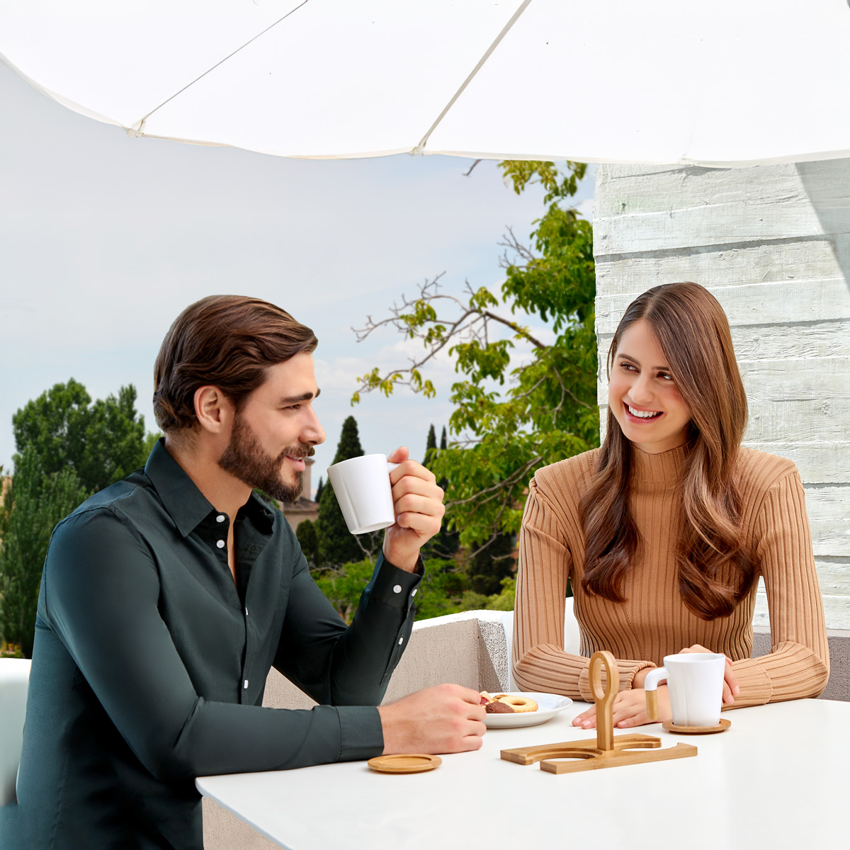 Juego de tazas. Incluye dos tazas de ceramica con asa de bambu, base de bambu con dos porta tazas y caja de regalo. No usar en microondas ni lavavajillas. El bambu es un producto natural el cual puede presentar variaciones en tonalidades y vetas.