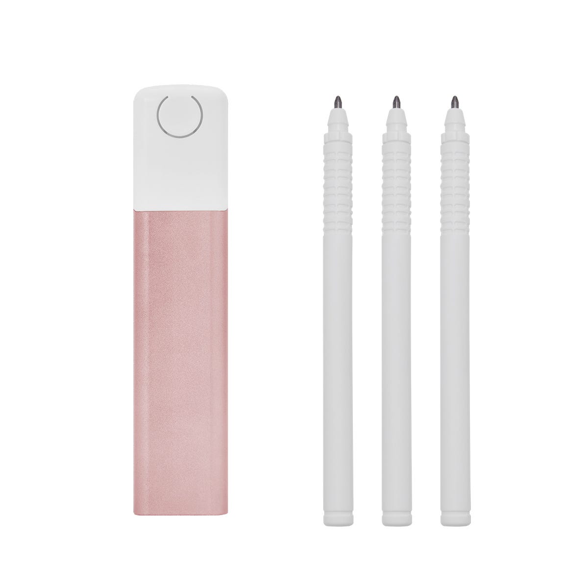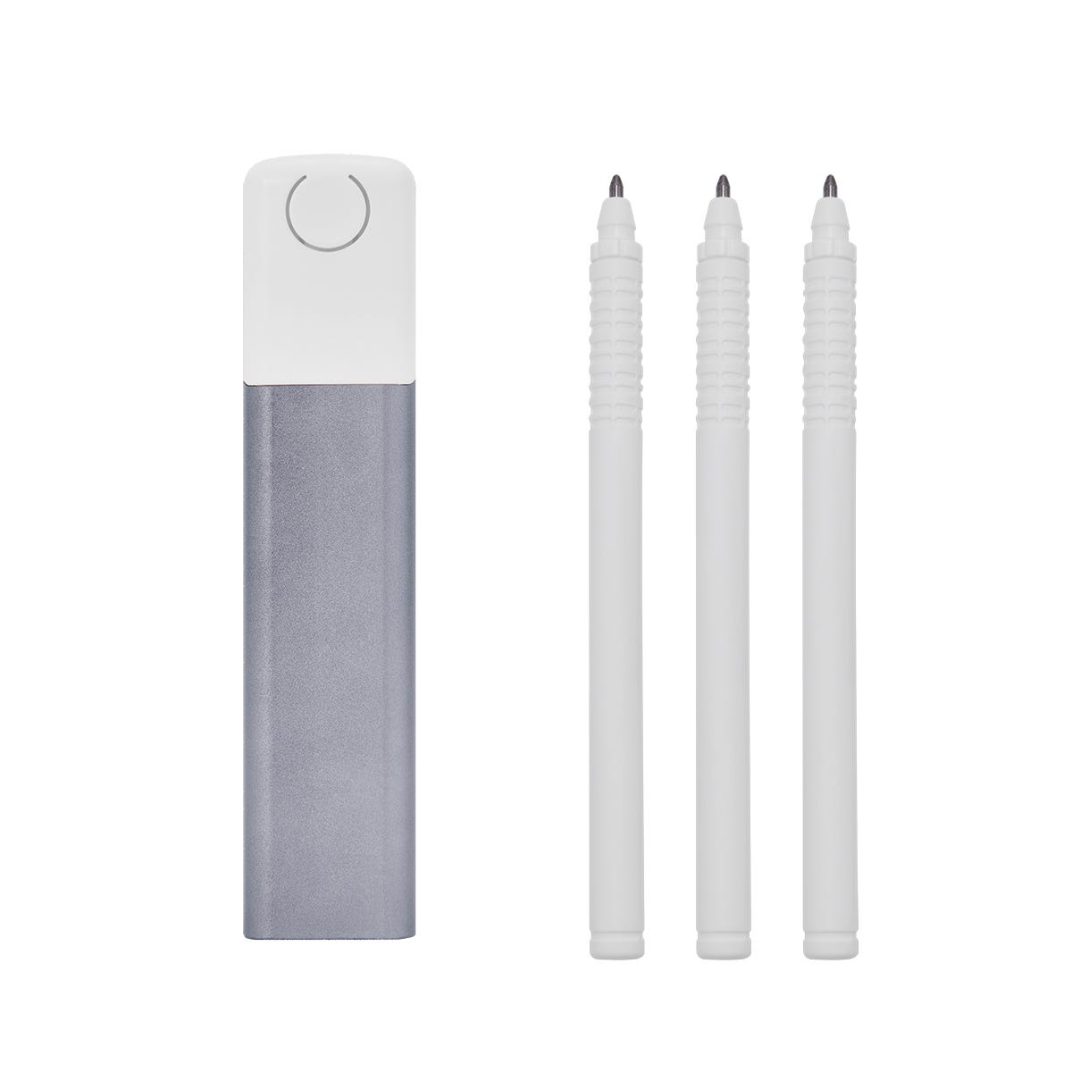Set de 3 boligrafos de tinta negra, azul y roja. Incluye estuche de plastico con sistema push. La base del boligrafo indica la tinta con el color correspondiente.