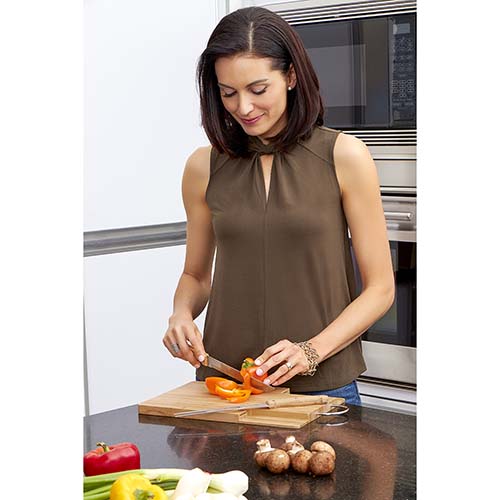 Tabla de cocina. Incluye tenedor y cuchillo. Incluye caja individual. La madera es un producto natural el cual puede presentar variaciones en tonalidades y vetas.