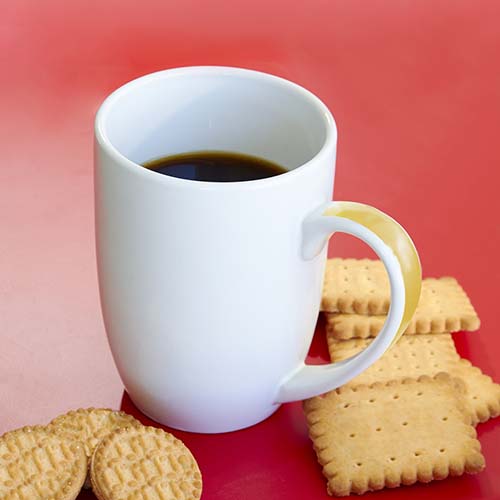 Taza de ceramica blanca con asa de color. Venta caja cerrada de 36 piezas.