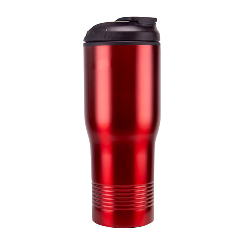 Doble pared. Pared interna plastico, pared externa acero inoxidable. Tapa de plastico con boquilla y sobre tapa de cierre a presion. Incluye caja individual.