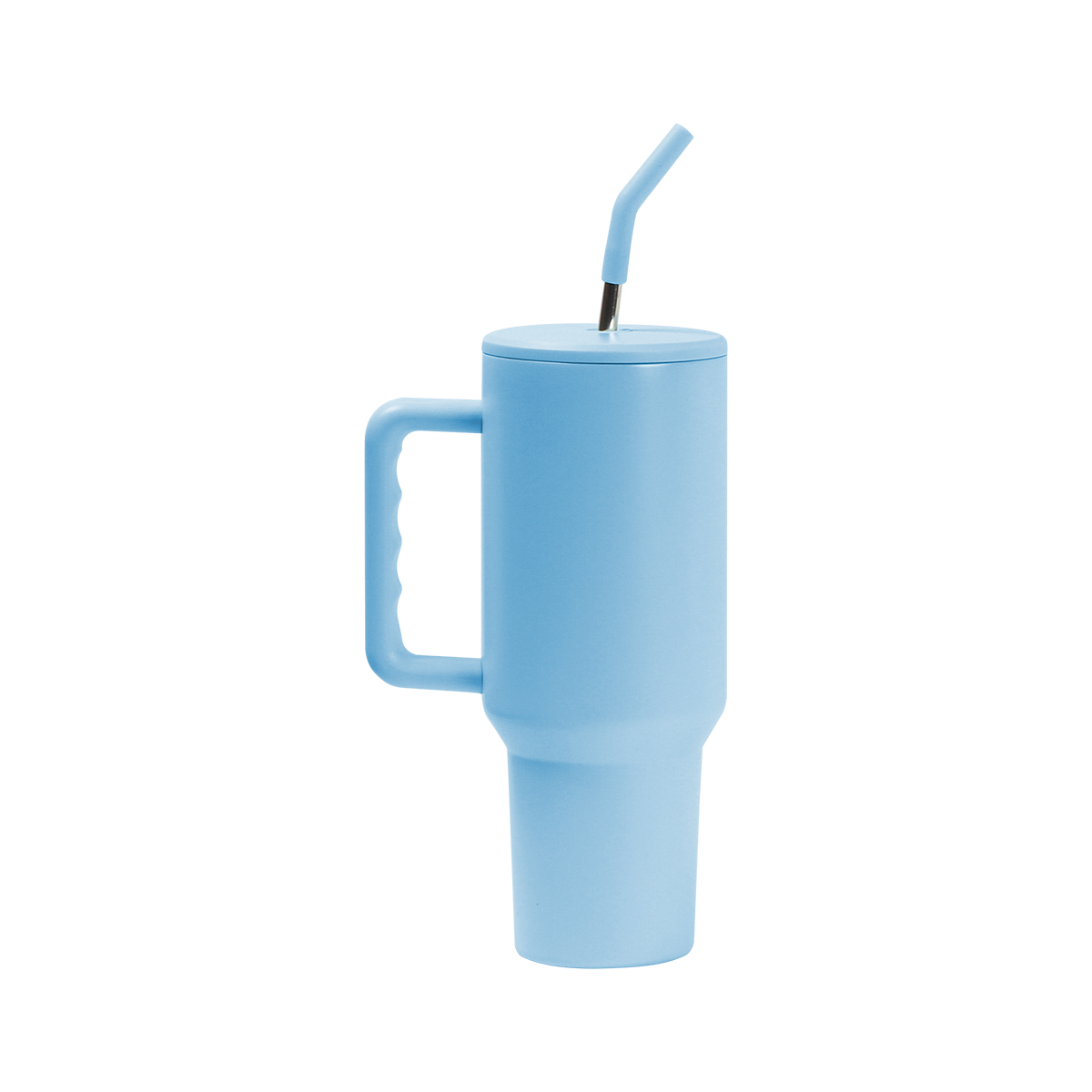 Termo fabricado en acero inoxidable de doble pared, tapa con entrada hermética para popote. Capacidad de 1,200 ml. Incluye agarradera y popote con boquilla de silicón.
