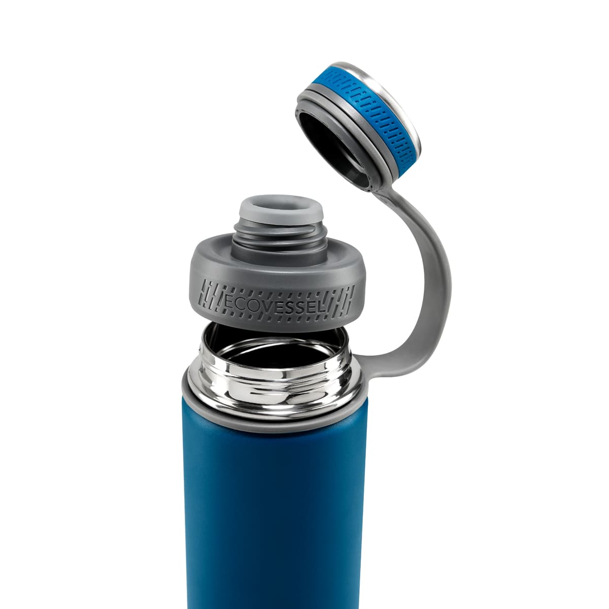 Tecnologia TriMax™ que usa aislamiento de triple pared. Doble pared de acero inoxidable y una capa de revestimiento de cobre, para proporcionar la maxima retencion de temperatura. Cerrado al vacio. Mantiene temperatura caliente 14 hrs y fria 72 hrs aproximadamente. Incluye filtro de acero inoxidable para te, fruta o hielos. La tapa Reflecta™ esta aislada y revestida con acero inoxidable, lo que mejora la retencion de la temperatura y evita que las bebidas toquen el plastico. La tapa tambien cuenta con doble apertura, con una boca ancha para facilitar el llenado y una boca pequena para beber, un asa de silicon resistente y flexible integrada y un sellado seguro a prueba de fugas. Material BPA free. El ancho del termo se ajusta a la mayoria de los portavasos, ideal para utilizar en automovil. Incluye un protector de silicon en la base para prevenir abolladuras y es antiderrapante. Incluye caja individual.