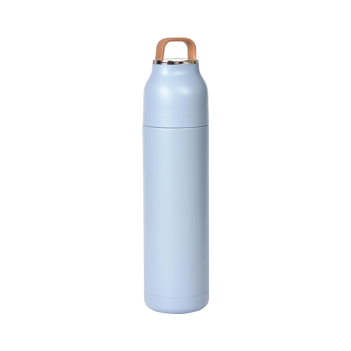 Termo de acero inoxidable doble pared con asa de silicón en color café. Fabricado en materiales de grado alimenticio, mantiene bebidas frías o calientes por un largo tiempo, no usar en microondas. Capacidad de 500 ml. Incluye caja de cartón individual.