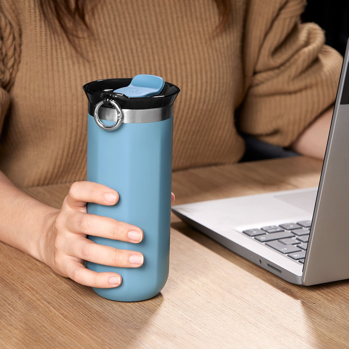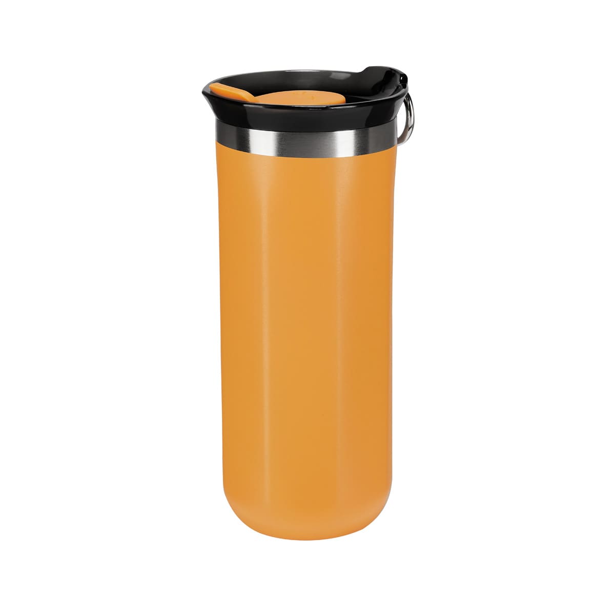Doble pared. Cerrado al vacio. Pared interna y externa de acero inoxidable. Tapa de plastico con sistema de rosca, sobretapa de silicon y aro metalico removible. Mantiene temperatura caliente 6 hrs y temperatura fria 8 hrs aproximadamente. Incluye caja individual.