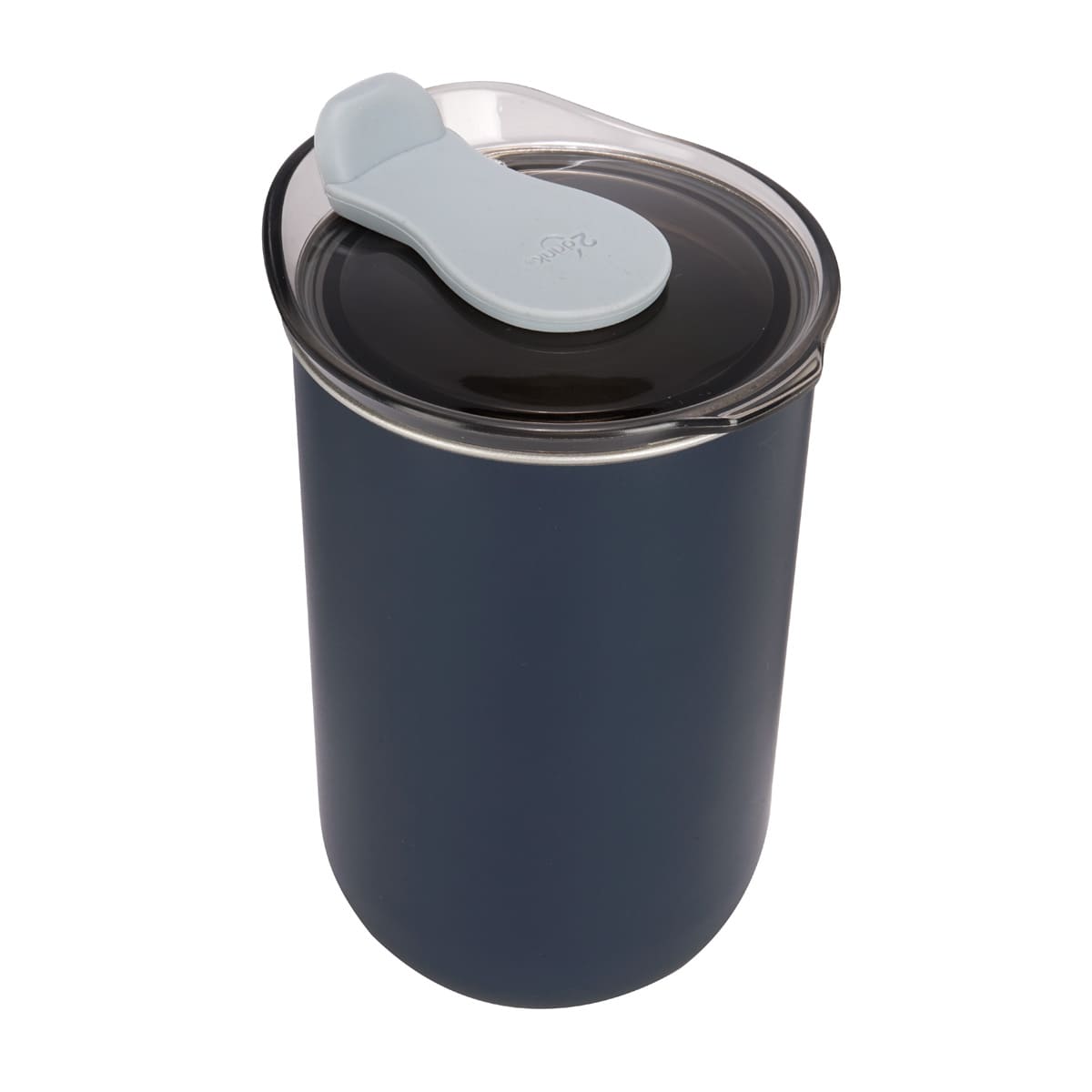 Doble pared. Pared interna de acero inoxidable y externa de plastico. Tapa de plastico con sistema push y sobretapa de silicon movible. Incluye caja individual.