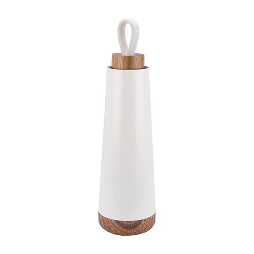 Doble pared. Cerrado al vacio. Pared interna y externa acero inoxidable. Tapa de madera con sistema de rosca y agarradera de silicon. Mantiene temperatura caliente 6 hrs y temperatura fria 12 hrs aproximadamente. Incluye caja individual. La madera es un producto natural el cual puede presentar variaciones en tonalidades y vetas.