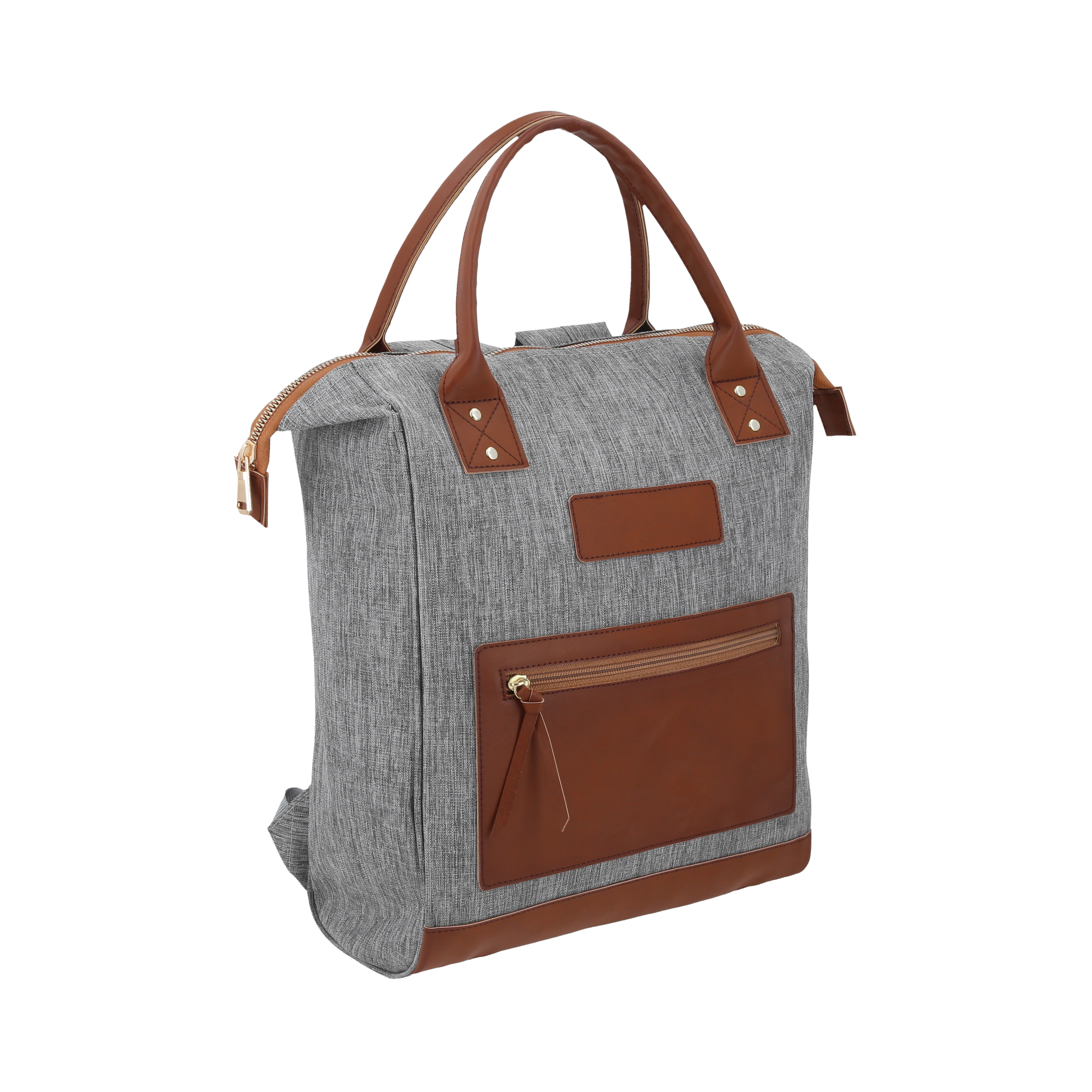 Mochila de 2 compartimentos: 1 compartimento con porta laptop acolchado, 1 compartimento frontal y asas en parte superior.