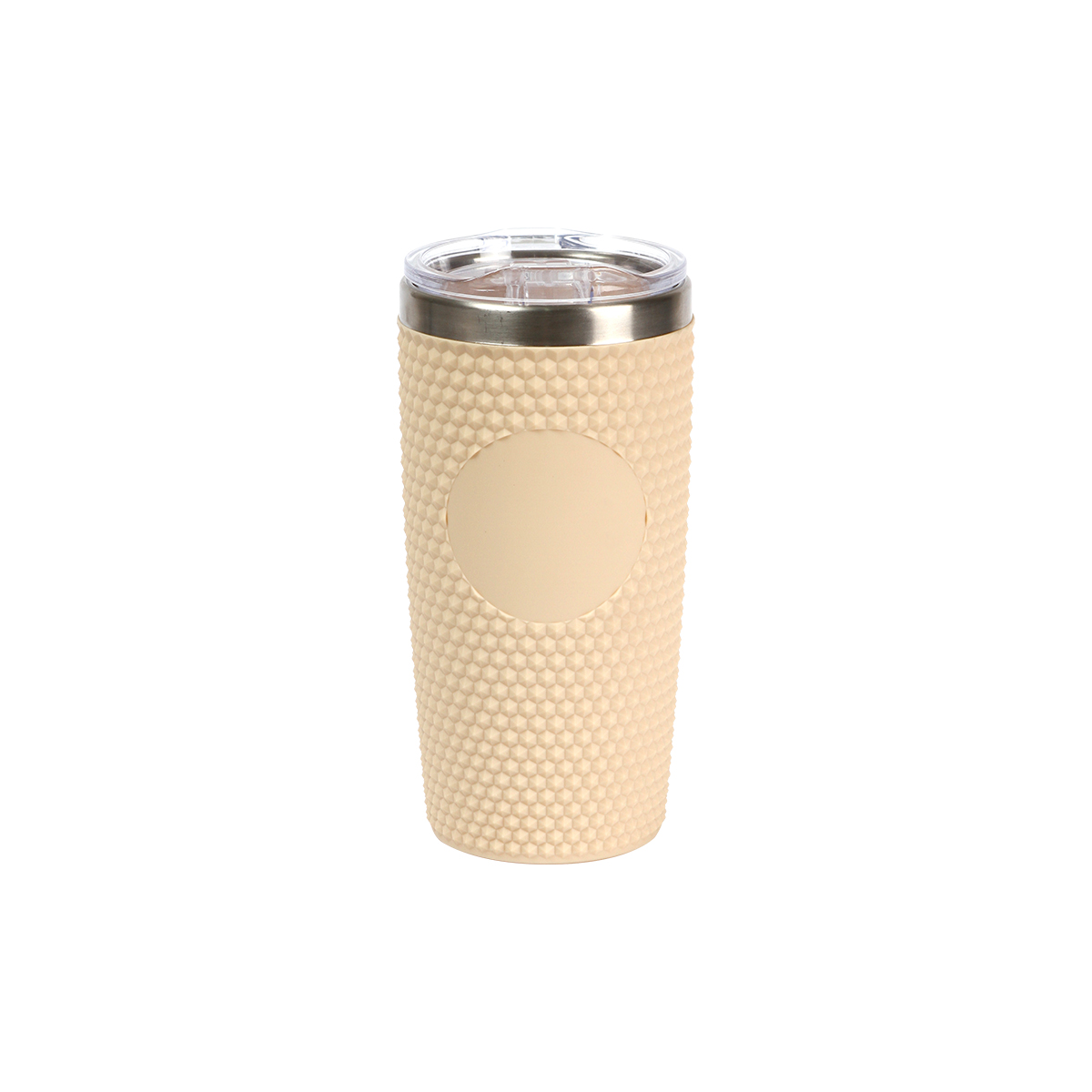 Vaso doble pared fabricado en acrilonitrilo estireno. Incluye tapa transparente deslizable, con anillo de silicón para sellado. Su diseño con relieve lo hace atractivo y diferente.