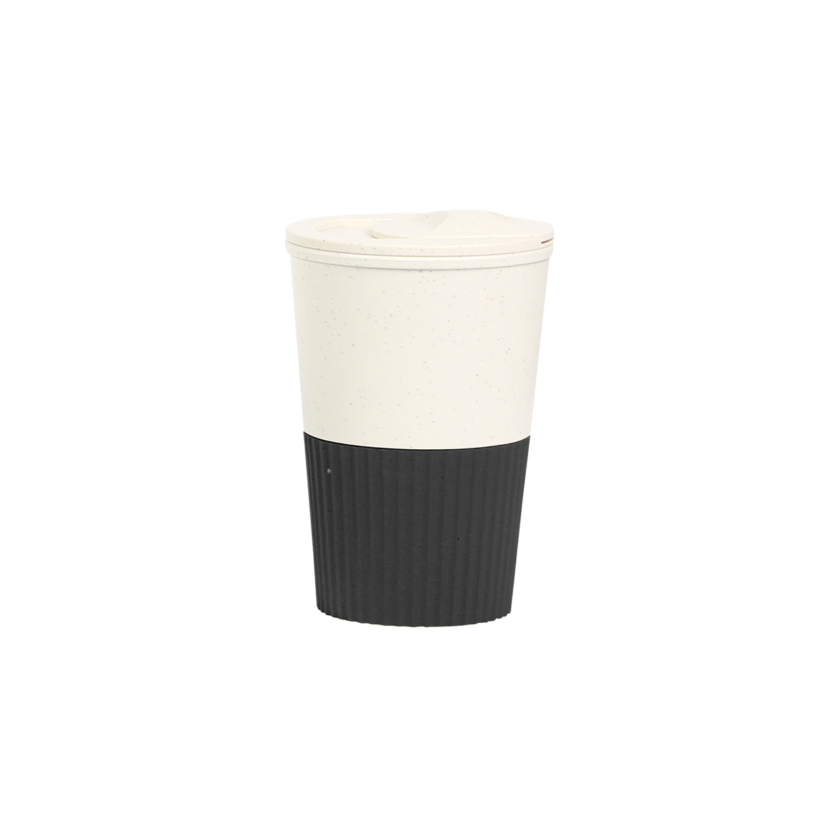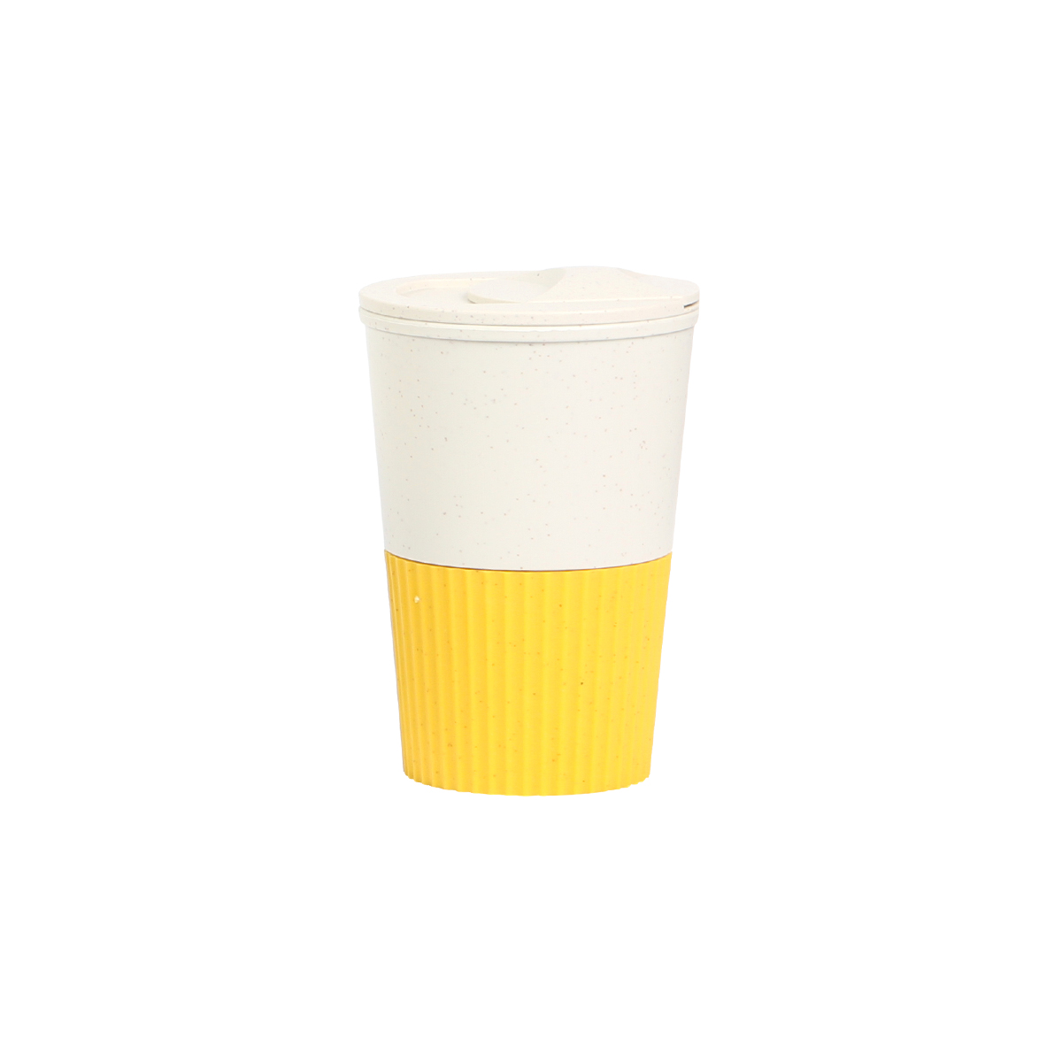 Vaso bi-tono fabricado en polipropileno (PP) y fibra de trigo. Incluye tapa deslizable. Capacidad 350 ml.